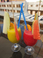 На пляже, помимо бара отеля, есть витамин бар, где можно купить кукурузу, коктейль, мороженое. Цена в евро и долларах одна т.е. кукуруза 1 доллар или евро, коктейль соответственно 3.