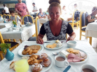 Достоинства отеля,качество услуг,сервиса и добросердечность,культура,трудолюбие,нелицемерность и достоинство персонала(в любой точке и отрасли предприятия) во много раз превышает его стоимость.Респект и благодарность руководству и менеджерам отеля,и принимающему туроператору--это профессионалы и люди занимающиеся своим делом,которое они явно любят и по домашнему ценят и заботятся,они видимо трудятся не только ради денег,но получают и радость.И здание,архитектура,картины,пляж,море,мебель,организация досуга и территория поражает красотой и креативной мыслью,располагая к релаксу и желанием жить.В отеле есть все,что необходимо.Питание разнообразно и на высоте,для всех категорий потребителей,выбор есть(соответствует цене и категории отеля,а иногда превосходит ожидаемое и издержки на путевку,выложу фото)А-ля-карт--просто романтическое приключение и бонус,сюрприз отеля.Анимация разнообразная и увлекательная.В баре есть практически все для утоления жажды и два вида воды,которую можно брать на прогулку,поездку,к морю,к бассейну,вномер--газированная и без газа,но не на виду,ее надо спрашивать,дают без ограничения по запросу.Море шикарное,сразу не глубокое,как и пляж(песочек),лежаков и мест достаточно всем желающим,занимать ночью не надо,но мягких матрацев не хватает на все лежаки."Разрекламированный Джордж" конечно работает неплохо,свою функцию и долг выполняет добросовестно,но оценка его личности и деятельности явно "субъективна",завышена и не соответствует действительности:1)почти целый "рабочий" день стоит(или сидит,бегом бежит(завидев),приносит матрац и протирает лежаки) с немцами или др.евро-ино. и с идолопоклонческой улыбкой "чешет с ними лясы",чуть не кланяясь(это продолжается и вечером в баре),русскоязычных явно не привечает,2)так получилось--три дня ложился на одном лежаке у моря и в глиняной мусорке у лежака лежал тот-же мусор(это такая мелочь,но..).Экскурсии интересны и увлекательны,впечатляющее приключение,стоит потратиться,всем понравилось.Стоит обязательно и в первую очередь съездить в Набель,в местную медину и магазинчики(примерно 7 км от отеля,цена на такси от 7 до 12 динаров точно по счетчику,таксисты доброжелательны и не обманывают,цена всегда разная,почему не знаю?,причем обратно всегда дешевле),в Хаммамет старый и новый,в порт,медины,парки развлечения(цена на такси пр. от 10 до 12 динаров,хотя растояние больше чем до Набеля)Для шопоголиков--перед поездкой смотрел видео блогеров и туристов,слушал их советы,говорили что в Тунисе нет шопинга,со всеми надо торговаться,цену снижать в 4-ре раза и потом начинать торговаться,это полная неправда или почти неправда(возможно это мой субъективный личный опыт).Почти никто не торгуется(говорят фикс-прайс),а если и снижают цену,то "дисконтно--3-5%" и чуть-чуть,явно проявляя неудовольствие(шутливо-притворно кричат--"бандито","я банкрот",(и кто их этому научил?)В Хаммамете в магазинах и мединах(рынках) интересных и качественных товаров мало и цены в 4-ре раза выше чем в Набеле,это больше прогулка,фотосесия и развлечение.В Набеле на рынке(туристический квартал) и в магазинчиках в близлежащих улочках вокруг медины,которых сотни(ходить можно безопасно,но с благоразумием и бдительно) качественного товара много и по очень недорогим ценам(торг уместен и обязателен).Например кожаные женск