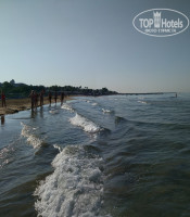 Береговая линия широкая, рано утром много людей бегает или просто гуляет вдоль моря. Песок. После шторма бывает, что прибивает водоросли. Вход в море долгий и пологий. Пару раз были волны, так на отмели очень много детишек прыгает и купается в волнах. Из водных развлечений- катание на банане, водных мотоциклах и полеты на парашютах. Вода очень чистая, теплая и соленая. Море суперское!!