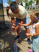 9. Зоопарк при отеле. Я бы назвала это место скотный двор (в хорошем смысле). Находиться от выхода из дверей отеля по правой дорожке. В зоопарке все таки есть порядок и жизнь животных приближена к местам обитания. Тут как в деревне: куры, утки, цыплята, утята гуляют сами по себе. Их можно кормить. Детки это делают с удовольствием. Маленьких утят ловят - гладят и отпускают. В подобии курятников живут павлины и индюки.