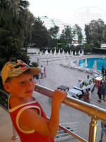 Наш отдых начался с приезда в отель в 5 утра.Нам предложили перекусить.Заселили быстро, во вторую часть второго корпуса,для меня самым страшным было это первый этаж!Ожидала худшего,но номер был чистым,никаких запахов,ни насекомых на балконах,при том что балкон был со стороны улицы-было тихо,изоляция хорошая с улицы,сантехника так себе,но при этом проблем особых не возникло, вообщем для первого этажа все отлично!В номере все хорошо,работал кондиционер,шкафчик нормального размера,вешалки,тумбочки с ящичками,что удобно,холодильник-нормальноработающий!:)Белье и полотенца меняли каждый день,даже если пол дня висела табличка "не беспокоить"-как только уйдешь-сразу прибирались,без лишних просьб.По ресторану все отлично,еда разнообразная,фруктов много.Персонала много в ресторане-за чистотой следили,предлагали принести напитки,обращали внимание ,что приятно,при том что народа ооочень много-вообщем молодцы!!! Территория большая-ухоженная,красивая,чистая ,растут персики,гранаты,мандарины,пальмы с оливками,цветов много!!!Кстати в отеле много отдыхающих русских,персонал тоже весь говорит на русском!Бары работают до 23-00,анимация до 22-00.После 23х начинается дискотека,для тех кому не спиться и хочеться продолжить веселье).Анимационное шоу за неделю прибывания было интересное,файер шоу,латино вечер,пенная вечеринка особенно запомнилось,тк было ярко и профессионально!!!Сам по себе отель оставил впечатление спокойного,семейного.Поселок тоже тихий,вечером в центре много народа ходят за покупками, торговые ряды открыты до 12ти ночи.Так же есть Аквапарк недалеко.Мы ездили в Манавгад погулять,в Сиде, автобусы ходят часто,рядом с отелем остановка(проезд 1$ в одну сторону).кстати писали что до пляжа далековато-ни сколько не далеко,пляж хороший,есть бар и снек бар(салаты,бургеры,фри,фрукты,пицца(беспл.),витаминный бар-фреши,кокосы,мороженное,мол.коктейли(платно),вообщем за счет этого можно весь день на море спокойно находиться-покушал,попил-купаться и загорать-удобно)))Так же там персонал-официанты обслуживают,сел за столик и сиди-все принесут)))Туалеты и души тоже на пляже есть)))Вообщем для семейного отдыха все отлично!!!Чем больше мы находились в отеле тем больше плюсов мы находили для себя и уезжать не хотелось совсем.Спасибо персоналу отеля,они стараются,молодцы все!!!
