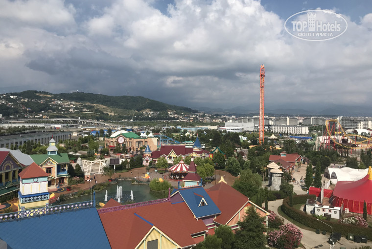 Расположение у отеля очень удобное. В шаговой доступности набережная, Олимпийский парк, кафе, магазины и развлечения. Немаловажным при выборе отеля было бесплатное посещение Сочи-парка по количеству ночей проживания. Одного дня нам оказалось мало, не все успели посмотреть, не на всех аттракционах покатались, но самые экстремальные опробовали. Жаль, что на второй день погода подвела, ливень и гроза остановили работу парка, пришлось уехать раньше. Есть повод вернуться.