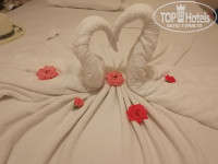 Заселили вовремя, номер Супериор (57 заявленных метров, указаны с учетом большого балкона), гостинная просторная, с кондиционером, спальня метров 9, без кондиционера. В номере всегда достаточно воды, полнае наборы полотенец. Номера, конечно, не "5", мебель новая, плитка на полу, но: потолок с отвалившейся штукатуркой, разобранный диван в гостинной без матраса (постелен обычный кусок паралона и сверху простынь), душевая кабина образца конца 90х. К примеру Наша 4ка в Израиле была лучше данной 5ки по номерному фонду. Но в целом общее впечатление это не портит, единственное в спальне реально жарко без кондиционера! Уборка номеров как повезет, там где стоит стол за 12 дней у нас скопились клубы пыли, когда обратно собирались, отодвинули, подметают, гигиенические наборы докладывают или нет, в зависимости от самой горничной, уборкой на "5" этот точно не назвать)