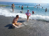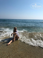 Пляж огорчает( всегда есть свободные лежаки, вода), но песочка/гальки не хватает. Кладбища не видели и на пляже "не одни плиты", как пишут некоторые идеалисты, есть разные зоны и опять же, кто что хочет, тот то и получает. На фото муж с ребенком сидят на мелкой гальке у входа в воду, плиты есть, они правее.