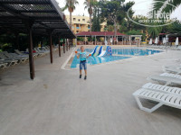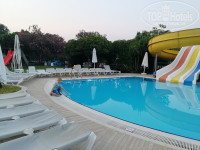 Сегодня вернулась с поездки, и по горячим следам, пишу отзыв. Параллельно загружаю отзыв на ютуб. Итак, приехали мы вечером,перед ужином. Дорога от аэропорта заняла 1,5 часа, включая15 минутную тех.остановку. Сначала неприятно удивили, мест нет. Предложили одну ночь переночевать в номере без балкона. Скандалить не хотелось, согласились. Утром,ближе к обеду,нам дали номер как просила при бронировании, 4 этаж, вид на бассейн. В номере чисто, ремонт делался несколько лет назад, но все прилично пока выглядит. Все работало. Спустились, поужинали. Сразу отметила, что нет очередей, и что блюд не много, но выбрать есть из чего. Много фруктов, сладостей вдоволь. Рыба каждый день, бывало и два раза в день. Курица, индейка, говядина и что-то соевое. В основном много овощей, овощи и мясо на гриле, сыр,зелень и заправки на ваш вкус. В общем голодные не ходили. Вино предпочла белое, красное и розовое на мой вкус кисловатое. Коктейли лились рекой, разноцветные и приятные на вкус. Кстати, на пляже все напитки кажутся разбавленными. И там же турецкие лепешки ....второй раз не стали брать...и первый не доели))) На пляж идти минут 10 обычным шагом. На видео в конце слышно как трещат цикады. Море каждый день было с волнами, но это даже прикольно было,можно кататься на волнах) Пляж песок с галькой. Вечером хорошая анимация. Будет отдельное видео, т к если заблокируют, то выложу его уже без звука(( В общем для отдыха с детьми рекомендую. Спокойный, размеренный ритм отдыха, и плюс от аэропорта сравнительно недалеко. Видео на ютуб https://youtu.be/LzGq0JFdRx0