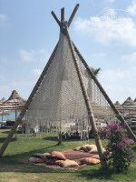 Белый песок действительно не нагревается - идеально! Там, где он заканчивается (вход в море) особенно это ценишь))) Всегда есть пустые лежаки. Рядом бар. Приятный вход в море. Из-за реки, граничащей с отелем, море кажется немного мутноватым, это особенно видно с высоты птичьего полета (точнее полета на парашюте). Но, если бы мы это не увидели сверху, то и не заметили бы. Брали пару раз "cabana" (шатры у моря) на пристани в виде скорпиона - удобно, что в них можно просидеть весь день. Там свой спуск к воде, лежаки, диваны, холодильник, душ, бар и доставка обеда, но ближайший туалет у основного бара на пляже. Кстати, после 12.00 можно договорится о хорошей скидке. Там же есть и бесплатные лежаки.