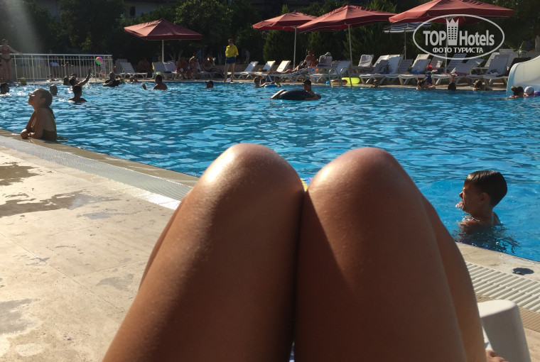 Прилетели ночью нас сразу разместили в малюсенький номер утром предложили выбрать другой, дали очень большой номер с 3 кроватями, уборка каждый день все чисто, есть детская площадка на территории, еда очень вкусная, мало разновидностей блюд зато качество порадовало! Бассейн чистый большой, детей очень много так как лагерь на территории, но это даже плюс, есть детский клуб, вечером анимация , до 12:00 шумно но дети спали потому что выматывались за день, до моря конечно далековато но за то прогулка, на пляже лежаки бесплатно, в четверг ходили на базар который приезжает , от отеля он недалёко, так же рядом находится мигрос , нам собственно все очень понравилось и дети в восторге! Единственный минус это шум цикад но к ним быстро привыкаешь .