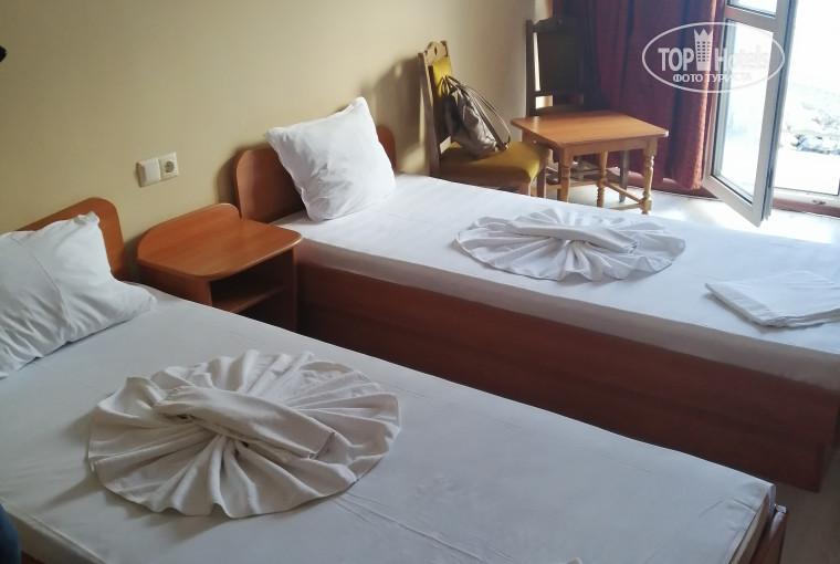 Номер обычный , стандарт, две кровати, кондиционер, телевизор с двумя российскими каналами, холодильник, балкон. Уборка каждый день, полотенца меняют через день, постельное белье меняют раз в три дня. Отель не новый, мы жили в старом корпусе, но подушки, одеяла, матрасы, белье все чистое, белоснежное, спасибо персоналу за чистоту и порядок.
