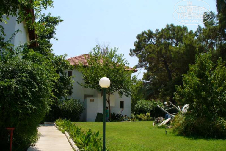ПЛЮСЫ. Отель хороший, чистенький, номера расположены 2-х и 3-х-этажными бунгало. Территория небольшая, но очень много всякой зелени, деревьев, цветов, за которыми не видно границ отеля. Питание на 5+, персонал милый (когда мы там отдыхали, в отеле постоянно жил брат хозяина с семьей и строго следил за качеством питания и обслуживания). Есть дискотека. Примерно в 100 м от отеля много туристических бюро, где можно без опасения взять экскурсию. Там же мы каждый вечер брали мотороллер и ездили в Кемер; можно взять в прокат машину. Напротив отеля полно сувенирных (и не только) магазинчиков.
