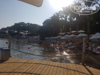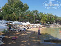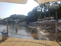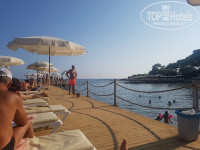Море/пляж: пляж песок+галька. Море всё в камнях, булыжниках. Вода первые 9 дней была прозрачная, потом мутная и грязная. В воде валяются стаканчики пластмассовые с бара и не только. Хотя мусорок много. Шезлонгов катострофически не хватает. Именно Катострофически. Они все заняты полотенцами. Люди оставляют утром, что бы "забить место", а потом никого нет. Каждое утро начиналось с негатива и плохого настроения в поисках свободного места. Один раз пришлось даже поругаться с людьми. Пляж очень маленький. Есть 2 мостка. С одного из них можно прыгать. Есть на пляже сотрудник, который убирает, смотрит за порядком. Тоже подрабатывает "забиванием шезлонгов".