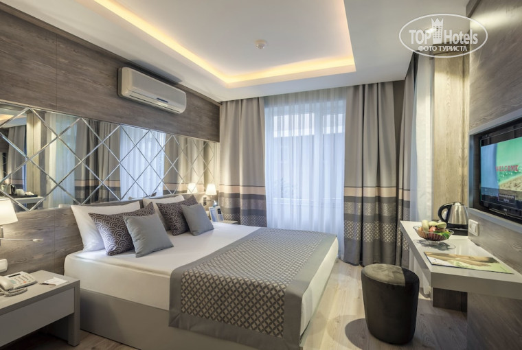 Удобное расположение для желающих совершить шопинг. От отеля ездит автобус 1$(дети до 7л бесплатно). Остановка Чокалы или что-то в этом роде, забыла( спросите на ресепшн) там магазины дефакто, вайкики и другие. Ехать до него минут 10-15. Есть ещё новомол, большой трехэтажный торговый центр, где есть всё, но добираться не совсем удобно, если на автобусе.( Нужна пересадка или идти далековато.)