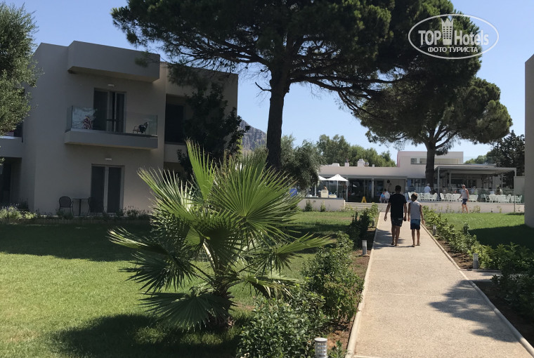 15 минут от аэропорта Араксос и вы в отеле! Сначала показалось что отель какой то маленький и невзрачный🙈, но это далеко не так, территория большая и очень ухоженная . Много цветущих деревьев , аккуратные корпуса, везде чистота и порядок.