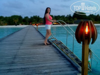 Озаглавливаю свой отзыв таким образом, поскольку добирались до отеля на 4х самолетах (Франкфурт-Амстердам-Абу-Даби-Мале-внутренний рейс до Maamigili). Такой путь нам проложил туроператор. С местного маленького аэропорта до острова-отеля - на катере минут 5. И Вы - в Раю:-). ...Разместили нас быстро. Бунгало наше 162, рядом со SPA, как мы и писали в своем пожелании. Расположение нашего домика очень радовало. Индийский океан здесь - очень ласковый и невероятно теплый. Июль на Мальдивах - самый жаркий месяц, и, хотя, температура воздуха здесь не поднимается выше +32, по ощущениям солнце - испепеляющее. Мы знали об этом, и запаслись необходимой косметикой. Купались в основном до обеда, или около 4х часов после полудня. Спасение в такой жаре - только в океане или бунгало при максимально включенной климе. Да, остров находится близко от экватора, поэтому день здесь равен ночи, темнеет рано, около 19 часов уже сумерки. После заката солнца купаться в океане запрещено, т.к. из открытого океана на мелководье приплывают хищные рыбы... Здесь уже много писали об этом отеле, поэтому подробно описывать все его достоинства не буду:-). ...Мы хотели спокойного отдыха, и здесь мы его получили: отель был полон гостей, но встречали мы их только в ресторане, остальное время казалось, что мы на острове почти одни, и это - огромный плюс. Остров - маленький: 140х700 метров, очень зеленый, уютный, белоснежный песок и бирюзовый океан, невероятно красивые закаты солнца:-). Природа сказочная, но, как мне показалось, хрупкая, наверное, потому что все здесь - рукотворно... У каждого бунгало - свой кусочек пляжа. Нам повезло с погодой: за весь отпуск не было ни одного дождя, за исключением последней ночи перед отъездом, когда всю ночь была гроза и ливень стеной... В океане мы плавали с рыбками со стороны песчаной косы. Но там довольно сильное течение, будьте осторожны. Акулки рифовые там - просто милашки:-). А со стороны нашего бунгало рыбок не было... Но зато - мелко, что очень комфортно для детей. С собой возьмите коралловые тапки, т.к. они спасут ваши ноги от острых кораллов. Мы взяли и не пожалели. Хотелось бы поблагодарить обслуживающий персонал отеля. Ребята очень вежливые, приветливые, внимательные. Особую благодарность хочется выразить менеджеру на ресепшене, имя его Фата, он неплохо говорит по-немецки, что было очень кстати, нашему официанту - Фату, и девочкам в СПАцентре: Розе и девушке-филиппинке, имя не помню, к сожалению! Ребята, Vara boda shukuriyya! Да, я заметила, мальдивцы - очень красивые люди!:-) Мы рады, что побывали в этом чудесном райском уголке.