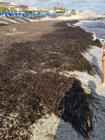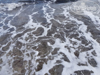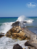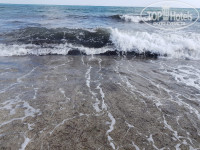 В наш период начиная с четвёртого дня начало штормить. Несколько дней нельзя было купаться из-за волн, а потом намыло водорослей, и вода стала от них чёрная. Купаться можно, но неприятно. Опять же при волнении на море вход и особенно выход из моря затруднён, может шибануть о камни.