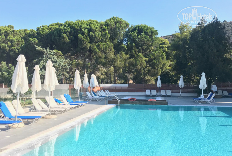 Отличный семейный отель для отдыха с детьми, в 15 мин езды от аэропорта Араксос. Здесь хорошо всё. Даже уборка в номерах. Замечательное расположение в заповедной зоне Строфилиа, среди сосен и кедров ,вдоль побережья- песчаные дюны. Территория отеля красивая и ухоженная, есть возможность для прогулок с колясками.