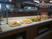 ОБЕД+УЖИН. Супы, Жаркое, Фаршированные овощи, Картофель (пюре, фри, печеный), Паста (4-6 видов, очень вкусная), Овощи гриль (перцы, баклажаны, шампиньоны и т.д.), Мясо (курица, говядина, ягненок, индейка, перепела, утка – все в разных видах), Рыба+Морепродукты (форель, лосось, сибас, дорадо, сельдь, раки, креветки, мидии), куча закусок, Сыры (около 8 видов, в т.ч. Дор Блю), Роллы (4-5 видов), Фрукты (инжир, дыня, арбуз, слива, персик, нектарин, яблоко, груша, грейпфрут, банан), Овощи, Зелень (петрушка, укроп, руккола и т.д.), Пицца, Выпечка, Десерты – очень вкусные (торты, профитроли, пирожные, турецкие сладости и т.д.).