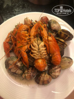 Питание в отеле просто космос, я была во многих отеля в разных странах, но такого я не встречала. Я не знаю как у людей язык поворачивается писать, что еда однообразная. Каждый день день были какие-то морепродукты( мидии, кальмары, креветки, раки), 3-4 вида рыбы, птица (курица, индейка) в разных видах, мясо (говядина, баранина), овощи и грибы гриль, картошка запеченная в фольге, паста (несколько видов), роллы, был даже борщ и окрошка)))) ну всего не перечислишь, скажу только, что все очень вкусно. Убирают в ресторане прям моментально, места находили всегда.