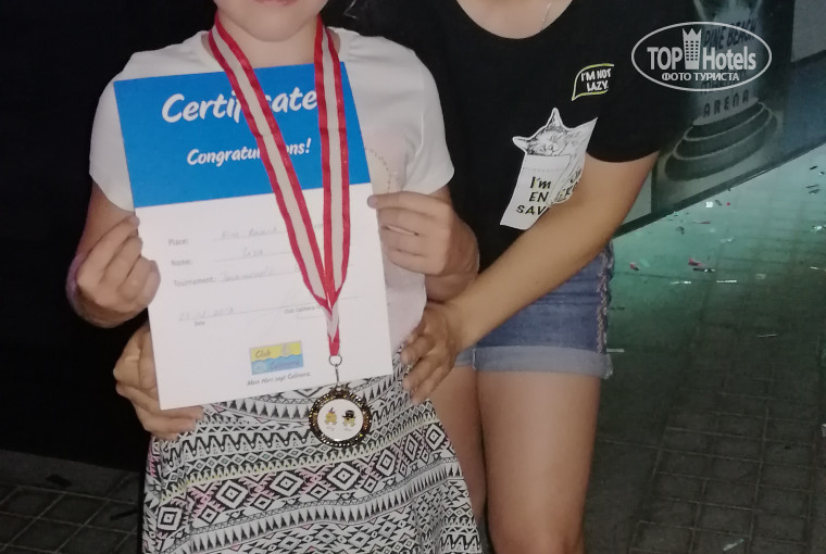 Детский клуб средненький, бывают и лучше. Аниматоры вялые какие-то, не заинтересованные, наверно жарой измученные. Клуб работал с 10-00 до 20-00, можно сдать ребенка. Но наша больше 2-3 часов там не находилась. За проведенное днем активити детям выдают сертификаты после минидиско, как бы награждают их. В клубе есть столовая, там ребенок может пообедать всякой ерундой типа фанты, мороженного, картошки-фри, пока не видят родители)) Там же аквапарк, также стандартный набор горок.