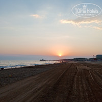 Пляж суперский, широкий, пологий вход, море очень теплое, ласковое, в первой половине дня штиль, потом волны. Море прозрачное, красивый цвет. Лежаков много, всем хватает. Солнце нагревает песок и приходилось бежать до моря). Песок чистый.