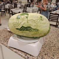 Основной ресторан находится в здании. Голодными никогда не были, все вкусно. Фрукты: арбуз, персики, нектарин, слива, виноград, дыня. Мясо: курица, индейка, баранина, телятина. Рыба: сельдь, сибас. Из гарниров всегда был рис и макароны, картофельное пюре через день. Супы были, но мы их не пробовали. Сладостей много, но на любителя. Тарелки конечно не все чистые, бывали грязные, со сколом, но мы просто брали другие. Если приходили к концу скатерти грязные, но это не критично.