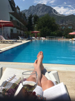 Мы отдыхали в этом отеле с друзьями (2 пары по 24-28 лет). Искали тур до 75 тысяч на двоих, и выбор пал именно на Монну Розу из-за его расположения, территории, внешнего вида номеров и большого бассейна. В целом, ожидания были оправданы - у отеля очень милая небольшая, но очень зеленая территория с мандариновым ,гранатовым садами, приятно гулять, все близко от номера - и бассейн,и ресторан.