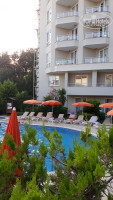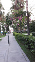 Территория отеля огромная и очень красивая,вся в зелени. Есть снек-бар,там можно пообедать гамбургерами и картошкой фри. Рядом со снек-баром пекут в шалаше лепешки Гезлеме.