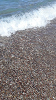 Пляж-все супер.вода чистая,волн нет,заход постепенный,но метров 10 уже глубоко.В основном все у берега купаются.Галька средняя,ногам комфортно.