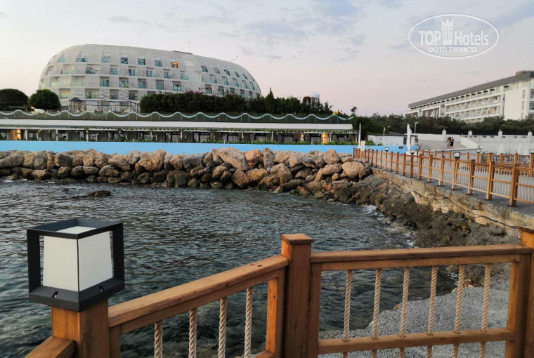 Сам отель находится на своеобразном полуострове на первой линии. С одной стороны это хорошо: вышел на улицу и сразу пляж. С другой стороны плохо: даже до ближайшего базара топать придется по извилистой улочке минут десять без малейшей тени по дороге. Про дорогу, которая связывает ключевые средиземноморские города и деревни я молчу - до ближайшей остановки транспорта еще +5-10 минут по палящему солнцу. Конечно, если у вас есть много денег, то проблемы нет - у шлагбаума в отель есть кнопка вызова такси, но вас вероятнее всего как "почетного туриста из пяти звезд" повезут не по счетчику, а по фиксированной цене - долларов так за десять на каждые четыре километра.