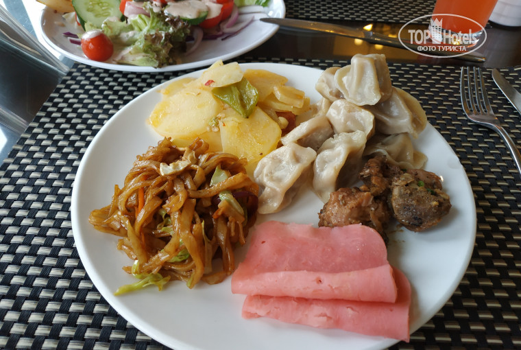 Завтраки: как по мне, не очень… А мужу нравилось. В основном все нацелено на китайцев. Для нас можно поесть яичницу, лапшу, овощи, рисовые булочки, тосты, джем, фрукты, иногда макароны, рис с овощами. Если не знаете что там такое лежит, лучше сначала попробовать, т.к. может быть очень острым! В первые дни мы набирали большими тарелками, хотелось все попробовать, но не тут то было…что то из выбранного было с китайским «запашком», что то острое, а что то вообще безвкусным. Но завтраки мы никогда не пропускали. Приходите лучше до 8.30 и тогда точно успеете все попробовать. Приходя на завтрак, вам нужно будет записать свой номер комнаты в журнал, который находиться у девушки встречающей вас на входе в столовую. И вид очень красивый из окон! Если хотите лицезреть море, тогда занимайте столы около окна и будет вам счастье. И если вы не терпите чавканье и отрыгивания, тогда ни в коем случае не садитесь с китайцами! Они обладают всеми этими качествами! Рыгают, чавкают, гремят посудой, орут.