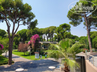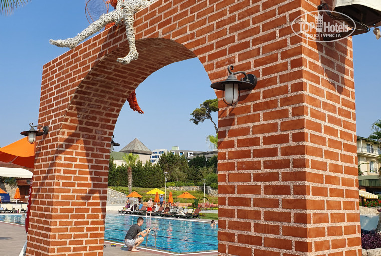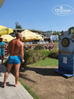 Про территорию: Тут есть на что посмотреть,она просто огромная,утопает в зелени,много плодовых деревьев (апельсины,мандарины,лимоны, грейпфруты,оливки),прогулочные дорожки. Зона бассейнов расположена ближе к морю,два бассейна с морской водой (она качается с расстояния от берега в 400 м.и проходит специальную фильтрацию,при которой вода не теряет своих свойств),глубина бассейнов 148 см. Зона пляжа: Везде песок,только при входе в море есть каменистая часть протяжённостью метр,потом по дну песок.