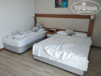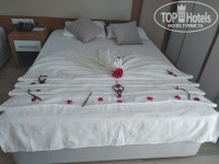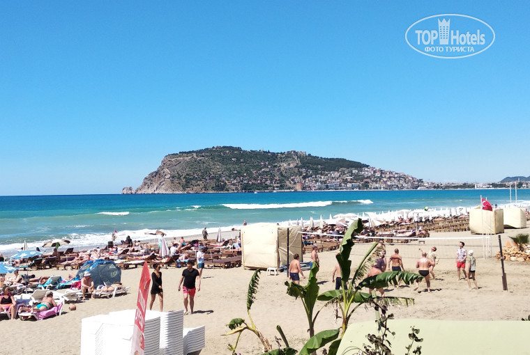 Отель располагается на первой линии. Очень удобно. Море через дорогу. Лежаками и зонтами не пользовались. Мы брали машину в аренду и ездили на пляж Клеопатра. Также обошлись без экскурсии, все красивые места посетили на машине. Впечатление осталось очень хорошим от отеля. Еще больше порадовало, что все вопросы можно было задать Юлии на ресепшене, она всегда помогала.