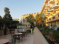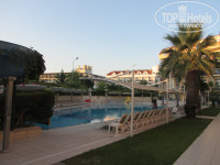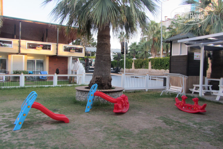 Территория отеля не очень большая. Имеется 2 бассейна, лежаков около бассейна достаточно. Бар в котором есть вода, кофе, чай, пиво, коктейли, юппи. Детская площадка.