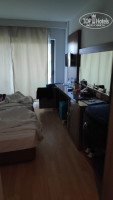Столовая: я считаю, что для такой ценовой политики, здесь все очень даже замечательно) мы питались тем, чем привыкли питаться дома. Да, колбаса соевая, да, нет мяса( говядина и т.д.) Но, извините, в том же Мигросе и мясо, и колбаса стоит оч.дорого! Колбасу мы привезли с собой))) Нашу, копчененькую))) На завтрак вам пожалуйста и яйца, и омлетики, и какие то запеканки....даже кашки видела(не ели). Сухие завтраки, какое то печево, хлеб разнообразный, свеженький, вкусненький))) Овощи, куча сыра, брынзы, зелень, какие то компоты, йогурты, короче каждый для себя что то найдет) Обеды и ужины тоже разнообразны.Из мяса идейка и курица, рыба была, салатов с майонезом не видела, или просто не замечала) Были нашинкованы различные овощи, отдельно были разнообразные соусы и масла. Каждый делал себе салаты на свой вкус.У меня по питанию претензий нет. Кофе из кофемашины. Я не фанат кофе, но мне понравилось. Чай вкусный. Вино кисляшка( не понравилось), пиво ничего особенного) Крепкие спиртные напитки не пью, ничего сказать не могу) Напитки типа Юпи из автомат присутствовали( мы не пили) Очередей не было, все что заканчивалось, подносили, мест всем хватало, посуду убирали быстро, тут же меняли скатерти и столовые приборы.