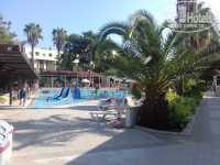 Территория у отеля не очень большая, но все чистенько и ухоженно. Зелень вся сочная, подстриженная, каждый день утром все поливается. Есть теннисный корт и стол для настольного тенниса. Два бассейна и лягушатник для мелких. Горки включают по времени. С 15-30 до 16 каждый день возле бассейна давали мороженное. Мой ребенок так и не рискнул попробовать))) Покупала обычное мороженное, типа Магната, в Мигросе. Вечером для детей мини диско. После были какие то развлекат.программы для взрослых ( турецкая ночь, вечер латиноам. танцев, акробаты и т.д) После 23 часов тихо и спокойно)