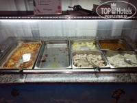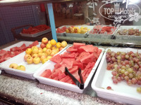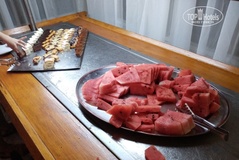 4. Питание. Я бы рестораном не назвала. Это столовая. Завтрак: омлет, яйца, блинчики, пончики, порезанные фрукты, йогурты, 4 вида выпечки. Это то, что нас интересовало. Конечно, были и сосиски и овощи какие-то, но это не для нас. Попить, чай, кофе (если его так можно назвать) , какао, юппи (плохо размещённый, один раз попробовала, во рту остался порошок).