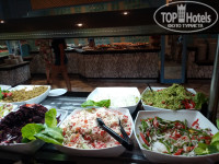 Если ходить возле моря и бассейна с морской водой на обед, то там будет блюд 5-6 и салаты с фруктами.