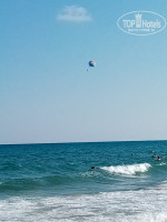 5. Море, бассейны и территория. Вот тут угодили. Море замечательное. Всё чисто. Никаких водорослей. Песок шикарный. Территория очень красивая, все утопает в зелени. Лежаки с матрасами всегда находили. Что не понравилось, что лежаков у бассейнов мало, и стоят они на траве. А так все нормально. Аквапарк работал. На пляже есть парашут, водные мотоциклы, таблетка, банан. От отеля налево есть магазинчики с сувенирами, одеждой и продуктами, ресторан, пиццерия. Налево большой магазин Карфур. Мы брали такси за 4 динара в одну сторону.