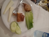 1. Заселение. Приехали в отель после 22.00 (хотя должны были к 21.00), потому что в этот день проходил в городе фестиваль и были ужасные пробки. Нас ждали русскоговорящих девочки гест-релейшн, которые уже все, кроме паспортных данных, заполнили за нас. За это им спасибо! И отправили нас перекусить в ресторан. Это был ужас! Фото прилагается. И это было наше первое впечатление об отеле и оно было ужасное!!! Лист салата, пару кусочков сыра и кусочек курицы. Но оно все было обветренное и на вид не свежее. Вернулись на ресепшн, а лифт не работает. Кстати, там это частая проблема. Пришлось взять самим чемоданы и идти заселяться. Так как сильно устали с дороги.