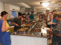 Завтраки наиболее приличны – как и везде. Далее, в течении дня, можно наблюдать что некоторые блюда просто ограничены по количеству и, как говориться, кто не успел, тот опоздал. Вносят например пятнадцать кур и готовят их на гриле на пляжном баре, кому хватит - повезло… Больше не приносят. И так по многим позициям питания. Очень маленький стол с горячими блюдами вокруг которого кружится толпа с тарелками. Почему бы еще такой-же не поставить? Столы зачастую не убираются, грязная посуда стоит на столах. Официанты как сонные мухи и такое впечатление, что их просто не хватает. А уж обслужить клиентов вовсе никакого желания не проявляют, что весьма странно (это же заработок). Кроме того – совсем шокирующая вещь, - во время работы обслуга ресторана постоянно питается прямо на ходу – как с голодного края. Такого еще нигде не видели. Каждый ест то, к чему приставлен не стесняясь отдыхающих. Работница раздающая мороженое постоянно его ест тут же не стесняясь, которая жарит пончики – постоянно их жует и так далее… Это просто неприлично, рекомендовали бы руководству на это обратить внимание…