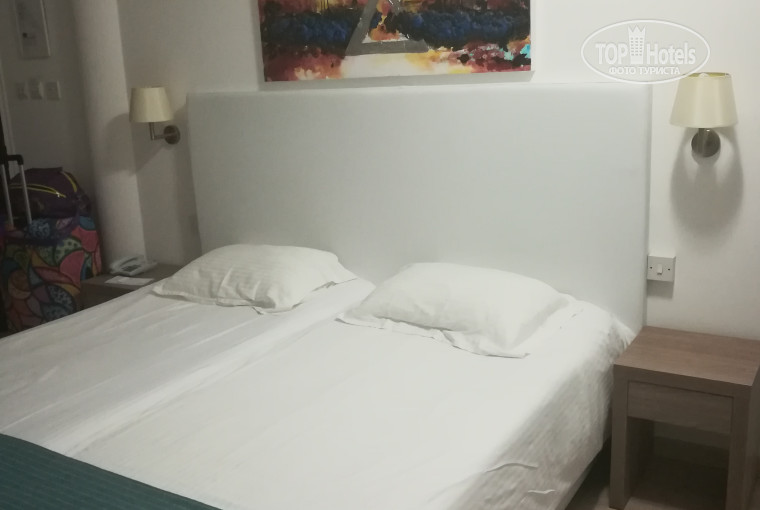 Номер нам очень понравился. Достался с видом на порт. Никакого дискомфорта ни порт, ни кафе с музыкой нам не доставляли. В предыдущем отеле жили рядом с громким рок-кафе и то привыкли. А здесь, можно сказать, вообще была тишина :) Вид красивый. Кораблики, море, прогуливающиеся отдыхающие. Очень мило ! Сам номер чистый, свежий, на кроватях удобные не сильно мягкие матрасы. Есть всё необходимое - шкаф, тумбочки, телевизор, холодильник, бесплатный сейф, стол, зеркало. На балконе не хватает вешалки для сушки белья, но он маленький, особо и поставить некуда (там стояли пластиковые стол и два кресла). Мы не притязательные, как и все сушили на перилах и на пластиковых креслах. Всё равно на жаре сохнет всё моментально :)