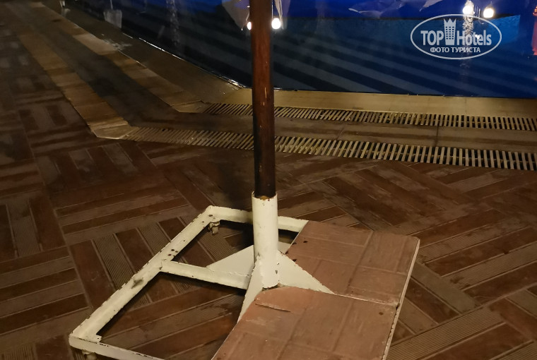 Еда отвратительная. А больше всего удивило подача блюд на половой керамической плитке. Территория у нашего маленького бассейна была вылажена из неё. Пиво днем разливали в маленькие пластиковые стаканы. Чайных ложек для десерта и варенья нет вообще.