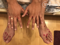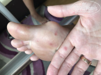 За три дня до отлета ночью температурила я, потом второй член копании. В последний день заметила на стопах сыпь и затем на руках.