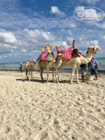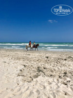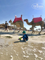 По пляжу ходят торговцы, продают фрукты, парео, мини пальмы финиковые, так же катают на верблюдах и лошадях, экскременты за лошадьми убирают, от верблюдов не видела. Мусор собирают по утрам, водоросли иногда.