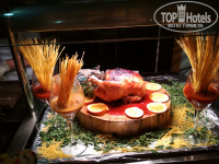 3. Питание. Тут однозначно одни плюсы. За 9 дней пребывания в меню побывали: ежедневно - блюда из куры, спагетти, картофель разных видов, рис, диетическое меню (отварное мясо и кура, овощи и суп), овощи на гриле, фрукты, салаты и прочее. Из блюд не на каждый день - говяжий язык, плов, утка, телятина. Выпивка так же на любой вкус, смешают что хочешь в любых пропорциях (текила, ром, виски, бейлис, ликеры, водка и пр.)