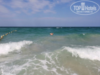 Море шикарное, теплое,песок белый. Лежаки и матрацы всегда находили, полотенца под залог 20 долларов + 7 динар за пользование. Каждый вечер дядечка с лошадкой собирал мусор и равнял песок. Охрана на пляже работает хорошо, посторонних людей нет. Последние два дня был сильный ветер и волны, конечно же водоросли, убирали пляж как могли, но это погодные условия и ничего тут не поделаешь. Территория отеля очень маленькая, детская площадка старая.