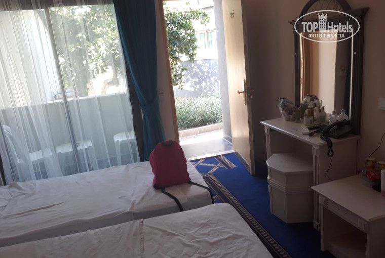 Приехали с ребёнком в отель около 22.00, нам сказали, что ужин закончился и кормить нас не будут...Далее нас заселили в бунгало(фото на сайте нет ни одного), жутко маленького размера, я была в ужасе. В шкафу дыра, двери нет и очень пахнет канализация. Утром я несколько раз подходила на ресепшн для того чтобы сменить номер, но мне сказали что управляющего нет, ждите( так я в этот день его и не увидела). Благо кормят хорошо, дочь ела у меня почти все. До моря метров 700 через торговый ряд, но это было даже в радость.