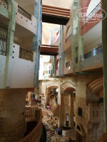 Зашли мы в отель и попали в восточную сказку. Интерьер конечно впечатляет, но кто любит идеальный новенький ремонт, то это не ваш отель. Приехали мы уже в два часа дня, поэтому заселять стали сразу. Предложили посмотреть два номера, один с видом на бассейн соседнего отеля. Другой, с доплатой 70 баксов, с видом на море и бассейн нашего отеля (можно сторговаться до 50 баксов). Мы не стали заморачиваться, взяли с видом на соседний бассейн. Детскую кроватку принесли сразу, на рецепшене многие понимают русский, поэтому проблем с общением нет. Убирали номер так себе, хотя динар оставляли каждый день. Кстати про чаевые, в отеле очень много иностранцев, у которых принято оставлять чаевые и улыбаться. Поэтому, если вы хотите, чтобы к вам относились также, улыбайтесь и оставляйте переодически динар. А вот море нас не порадовало. Там где лежаки ещё более менее чисто, но не идеально. Дети то бычок откапают, то ещё какой-нибудь мусор. А ближе к морю полосу из водорослей и мусора, который вынесло волнами, убирать не спешат. Когда уже совсем всё ужасно, приезжает трактор и убирает основную грязь, но идеально чистый пляж мы никогда не видели. За весь отдых море спокойное было примерно дней 7, тогда оно было чистое, тёплое. В остальные дни штормило, так что если вы едете на красивое море и чудесный песчаный пляж, то не едьте сюда. Бассейнов два, один совсем маленький детский, мы его лягушатником называли, рядом небольшая детская площадка. Второй большой, с одной стороны мелкий, с другой глубокий. Мы с детьми в основном в нём и купались. Лежаков и возле моря, и возле бассейна почти всегда хватало. Один раз на пляже пришлось подождать 5 минут. Были в Египте, там наши занимали лежаки привязывая на них свои вещи, тут такого нет, что нам понравилось. Расположение отеля очень хорошее. Выходите с центрального входа, поворачивает на лево и через 10 минут прогулочным шагом вы в новой медине. А если выйте со стороны как идти на пляж, переходите дорогу и налево по набережной можно прогуляться до причала. Катались на пиратском карабле, покупали билеты на причале за 25 динар со взрослого, дети бесплатно. Ездили на такси в старую медину, 12 динар в одну сторону. Билет в крепость 8 динар со взрослого, дети бесплатно. В новой медине на рыночке всё дешевле и есть отделы с вполне адекватными фиксированными ценами. Ещё ездили в зоопарк на такси, заплатили 65 динар за поездку туда и обратно и ожидание 3 часа. Питание нормальное, но используют много приправы. Кофе вкусное, чай отвратительный. Детского стола нет, младший сына у нас ел только йогурт. Если едете с маленьким ребёнком берите еду с собой. Нам не хватило и мы покупали в супермаркете кашу за 10 динар, выбора никакого она там одна, а пюрешки только фруктовые и тоже выбора нет. Вот старший (5лет) всегда находил, что покушать. Очень вкусно готовят баранину. Брали бесплатный тематический обед и ужин местной кухни. Обед никакой, а вот ужин очень вкусный. Мы потом ходили в ресторан на причал попробовать как там готовят, оказалось намного хуже. Алкоголь нормальный, мне понравилось розовое вино. В итоге нам всё понравилось, отель советуем. Побольше улыбок и позитива.