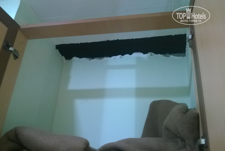 Зайдя в номер я испытала шок! Сказать, что он в стиле минимализма - не сказать ничего. Двумя словами: мрачно и убого!!! Вместо светильника с потолка свисали провода и паутина. На стене светильники были и даже лампочки в них, а вот плафонов на них не было. Заслонка в кондиционере была сломана, поток воздуха был направлен исключительно на кровать и чинить ее не собирались, сказав при этом:" не нравится - выключи!") Далее, открыв шкаф, я обнаружила там дыру в стене. На мои возмущения и требование заменить номер, сказали:" Ничего страшного, там никто не лазит, номеров нет!" Постель как будто стирана, но простыни, наволочки и полотенца покрыты всевозможными, разноцветными пятнами. И приступ брезгливости еще нужно преодолеть, чтобы спать в такой постели. За 10 дней ничего не меняли и номер не убирали вообще! Видимо, ожидали дополнительной финансовой мотивации)) Фен в номере работал полминуты и выключался. Спустя какое-то время опять полминуты. Высушила волосы и уложила прическу дважды за все время пребывания, при чем в общей сложности эта процедура заняла больше часа, и далее портить нервы не стала) Вид с балкона у меня был на склад ненужной утвари и столовую. При чем последняя была в метре от окна. Какая слышимость в этом отеле? Превосходная!!! Не вставая с кровати я слушала разговоры и музыку из столовой, фильм, который смотрели в соседнем номере, постоянные разговоры и беготню обслуживающего персонала за дверями и все прочее! Вентиляция в туалете также сделана интересно! Время от времени, судя по ароматам врывающимся в комнату, прорывало канализацию!))