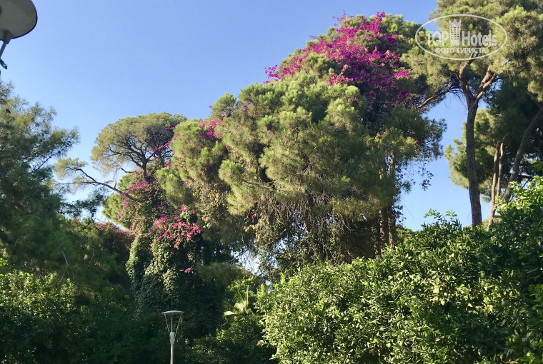 ТЕРРИТОРИЯ не огромная, как некоторые описывают)) обычным прогулочным шагом минут 15 в продольном направлении. Ходит шатл- типа гольф- кара. Не хочется идти ножками - едем. От наиболее удаленных блоков к ресторанам и пляжу. С утра до вечера, время ожидания 2-5 минут. По территории приятнее прогуляться. Это дивный сад цветов, пальм, сосен- пиний, всевозможных цитрусовых деревьев , ровно подстриженых газонов, Плетущиеся ярко малиновые цветы поднимаются на кроны высоких сосен, создавая эффект, что цветёт сосна)) запах, особенно рано утром потрясающий. Все ухожено и разумно, не нагромождено.