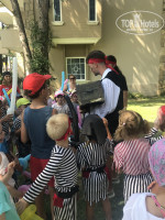 вообще туда не доходят , так как это далеко, при входе на территорию. Там же лазалка - сетка с шариковым бассейном. Анимирующихся две группы. 4-7, 8-12 лет. Есть расписание, на каждую неделю. Много всего разного, не буду в подробностях . Их и в клубе развлекают, и выводят на территорию, на пляж : день пиратов, день печенья, воздушные змеи на пляже, олимпиады и т. д. Все ок. Сдаём под запись не самостоятельных детишек, так же забираем. Пишем телефон . От вас - главное внимательно изучить, чем занимаются сегодня. Сама наблюдала, как детей без головных уборов аниматоры вели на пляж. Была программа по расписанию- песочные замки. Благо, в тот день солнце не пекло сильно. Родители НЕ СНАБДИЛИ дитя панамой. Кстати, для таких безответственных неплохо бы иметь в клубе пару запасных панам.